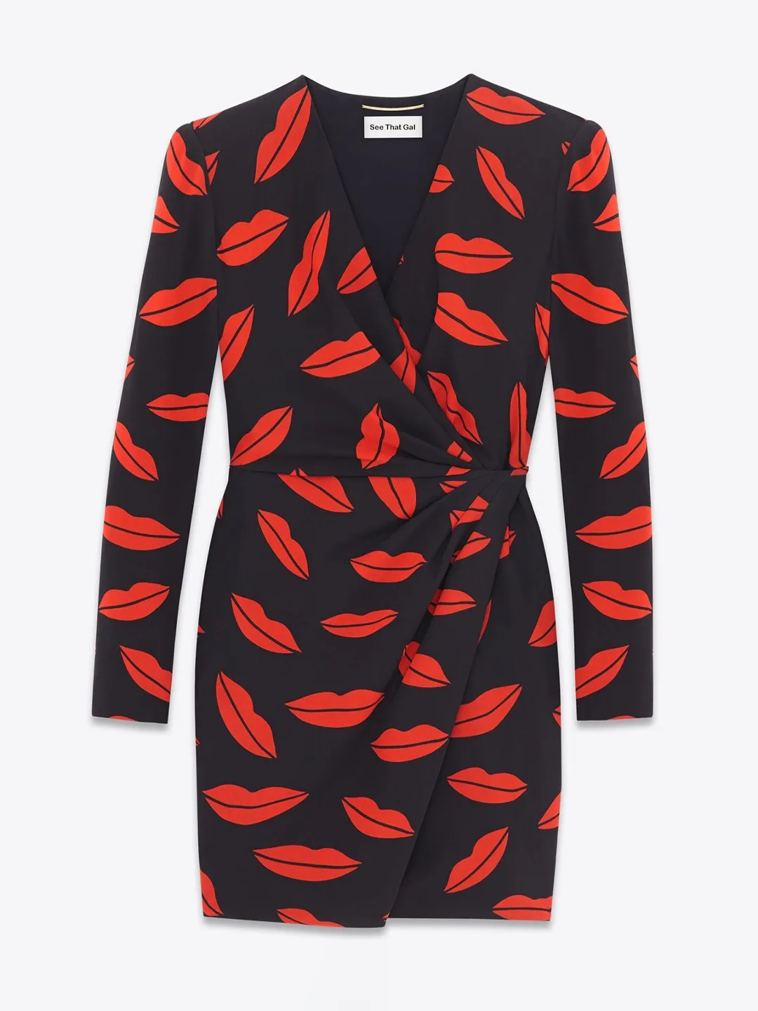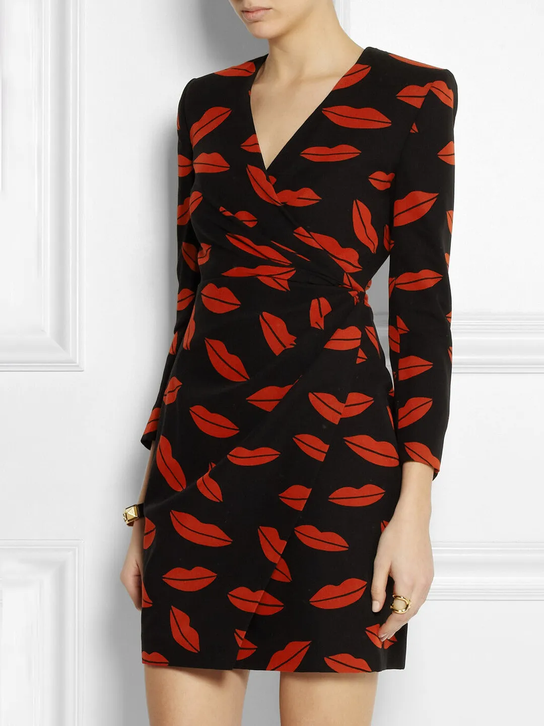 - Pattern: Red Lip Printed Wrap-Around Dress