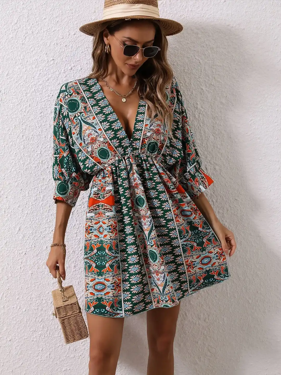-39%This kimino sleeves boho dress, has a V-neck with a tie-up detail at the back, pair it with your bohemian jewellries, footwear and a bag and get a elegent boho chic -look!