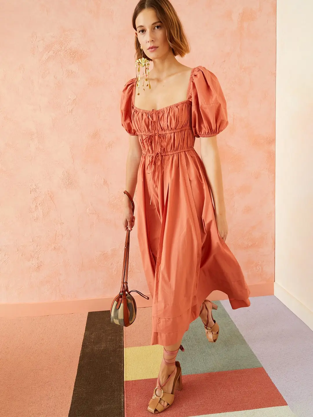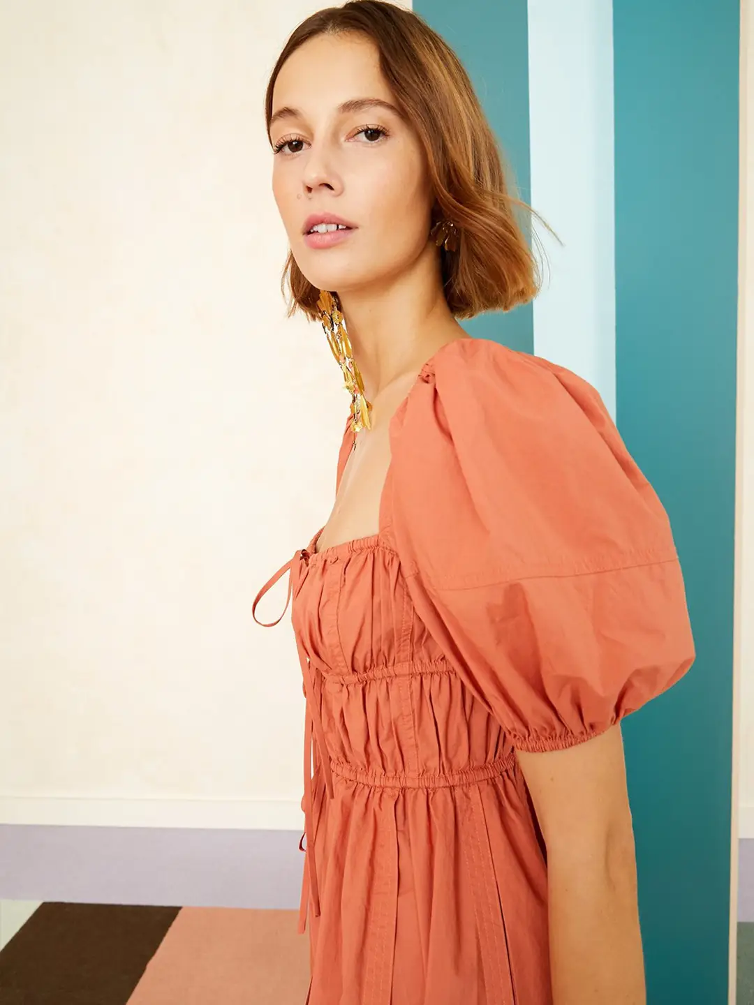 -46%Unleash your inner goddess in this stunning pure cotton dress. Its flowy design and delicate gatherings exude elegance, while the string details add a playful touch. Be effortlessly beautiful!