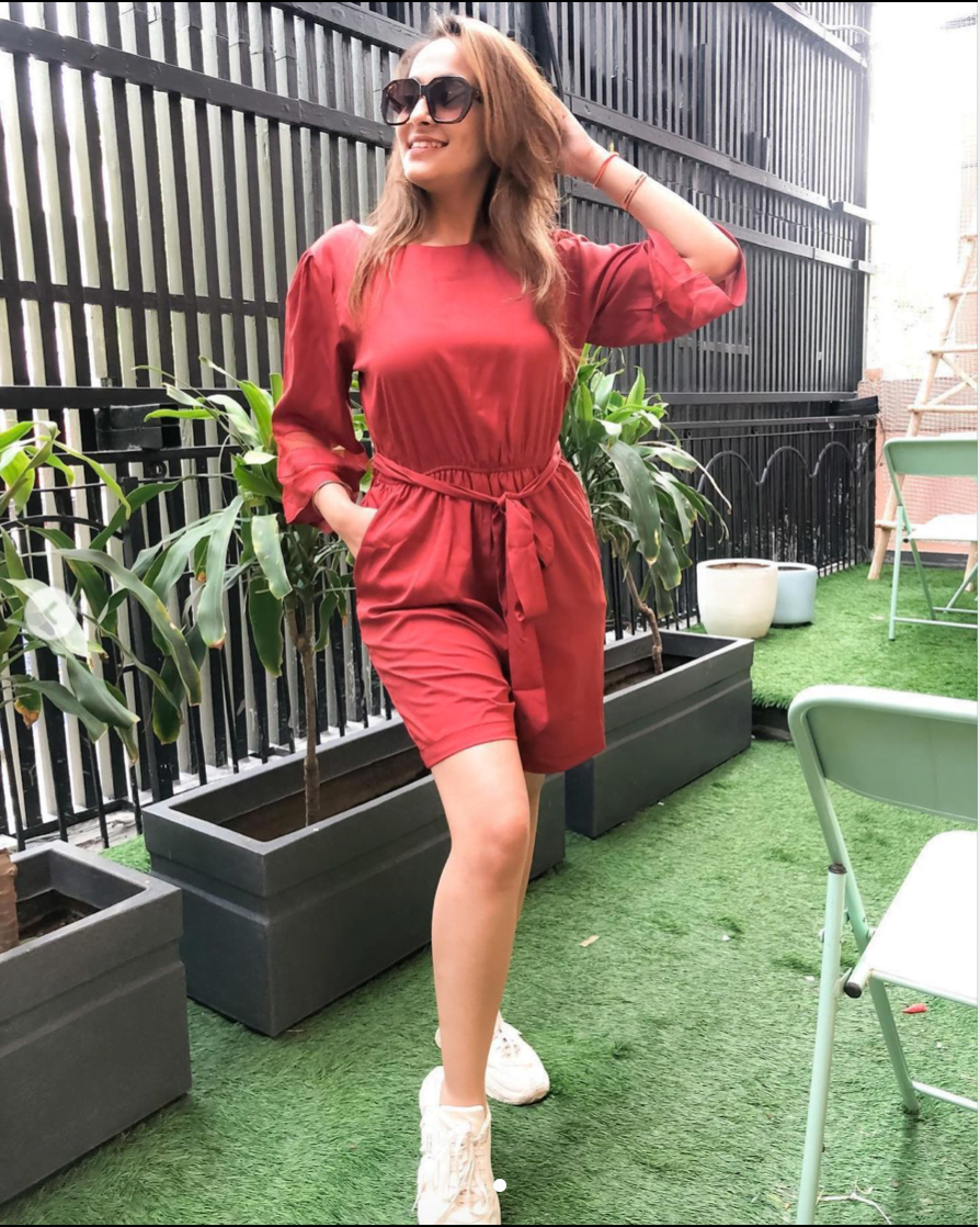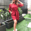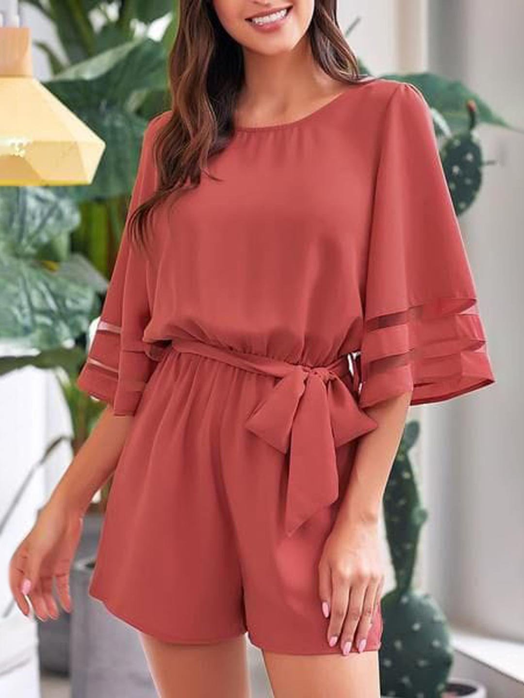 -33%This solid playsuit has a round neck short flarred sleeves with a waist tie up belt perfect for a day out with friends.